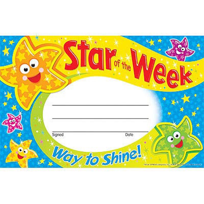 30 Kids Star of the Week Reward Recognition certificate ...